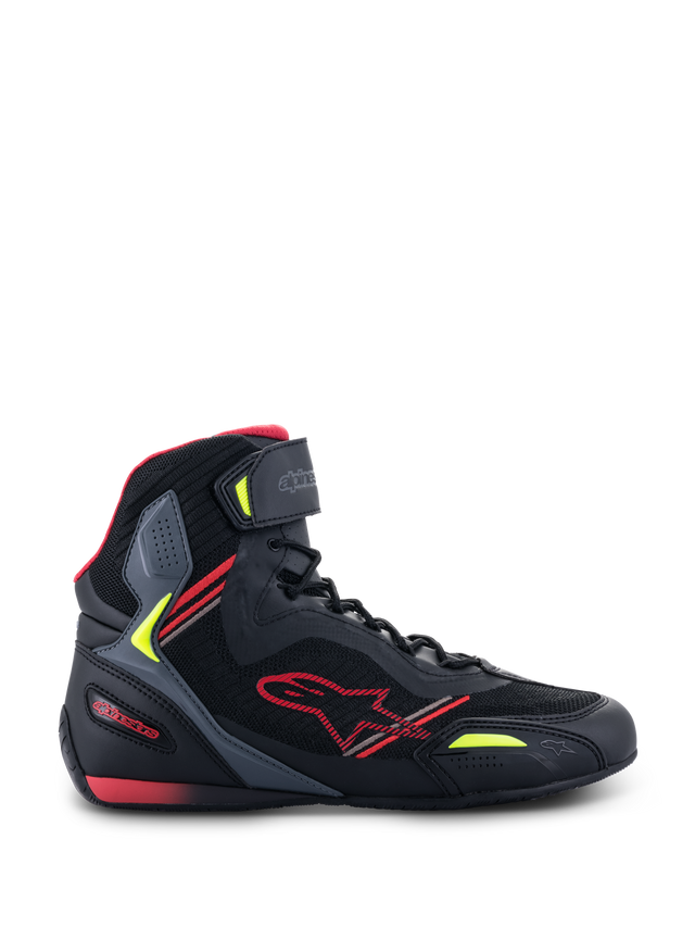 Featuring new performance innovations adapted from decades of R&D experience in the highest level of motorsports, the Faster-3 Shoe incorporates class-leading protective features, both inside and outside. The Faster-3 Shoe is constructed from a lightweight, durable microfiber chassis and com-fort-giving interior mesh, resulting in an aggressively styled road racing shoe offering performance, precision, flexibility and structural integrity.