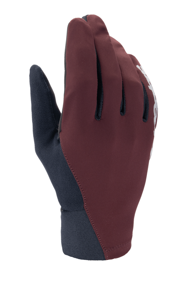 Soft thumb backing for easy wiping of sweat and mud.